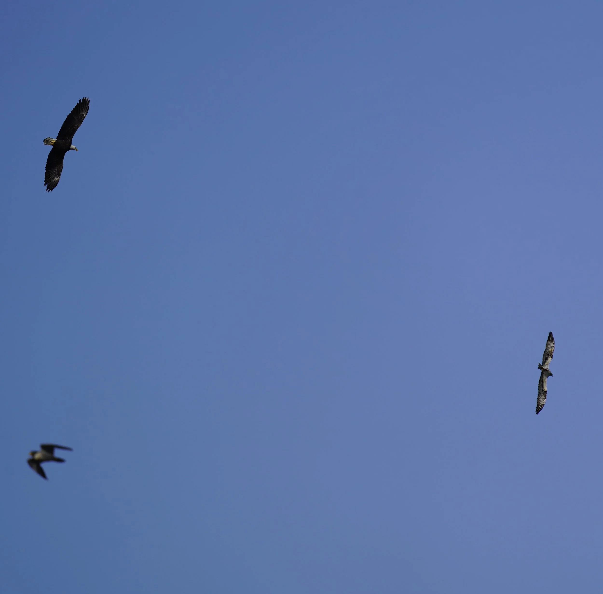 Peregrine Falcon - bottom left, Osprey on the right, Bald Eagle upper left.