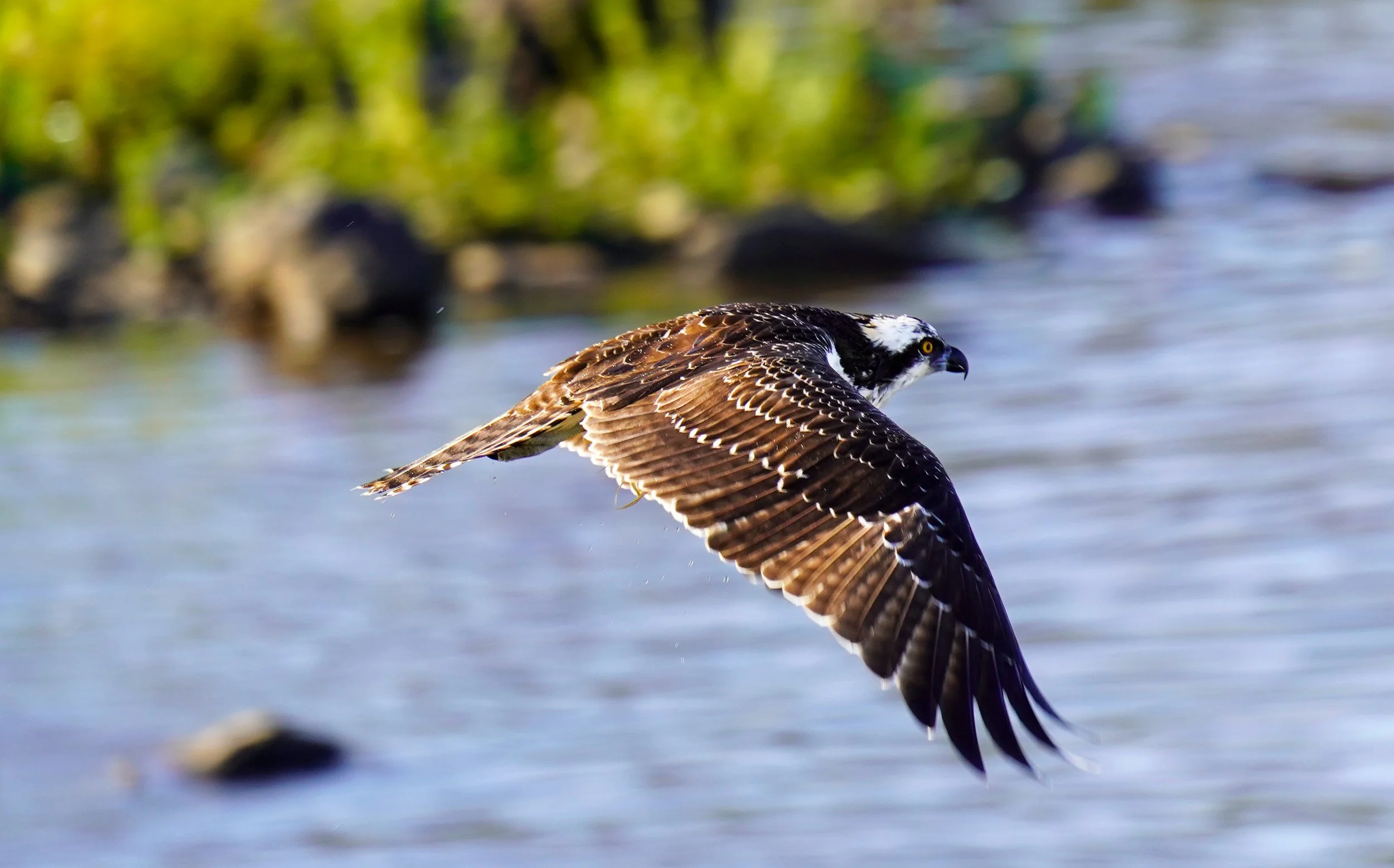 Ospreys hunt fish almost exclusively. They perch or fly over the water and dive down to grab them before flying off to eat them elsewhere.