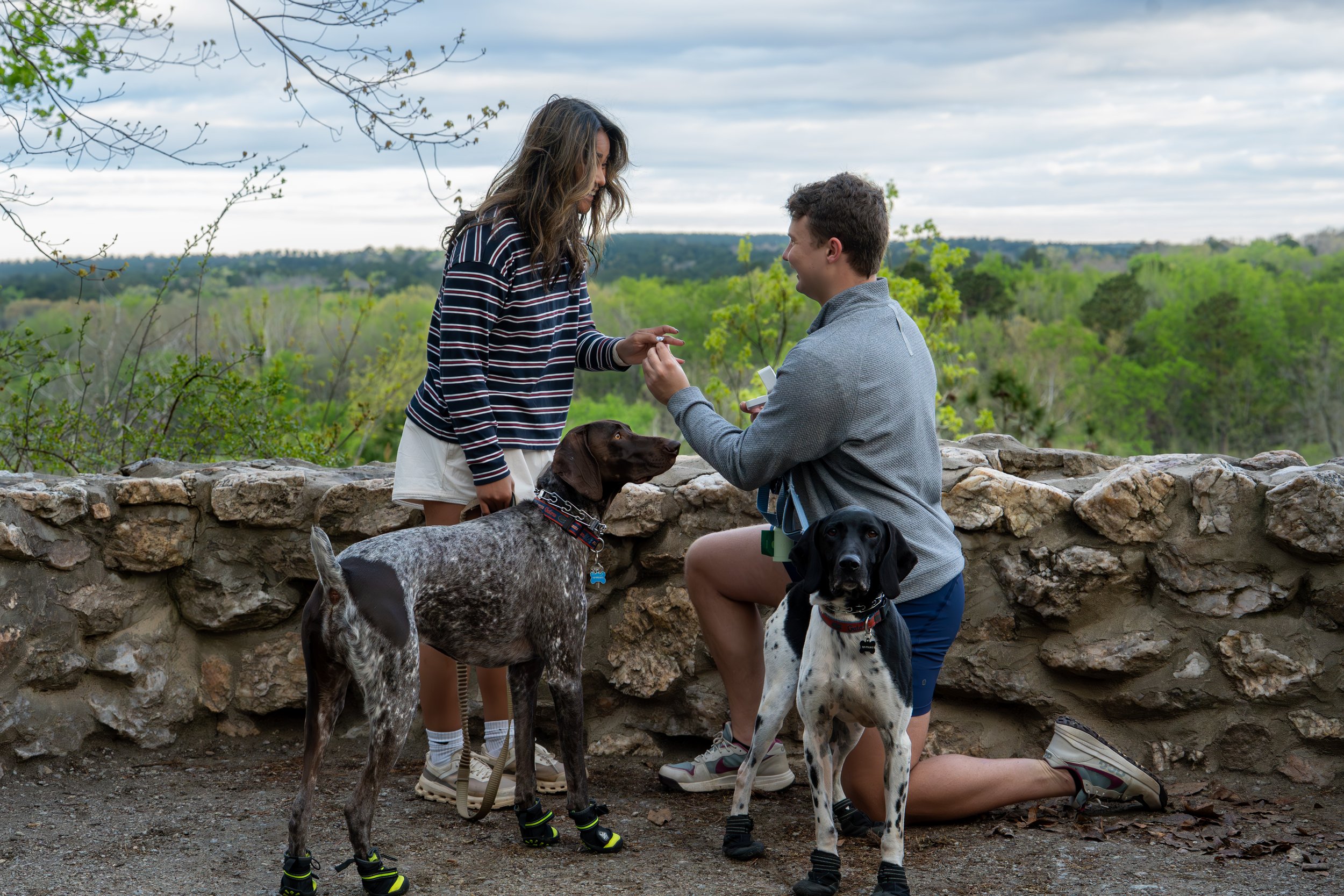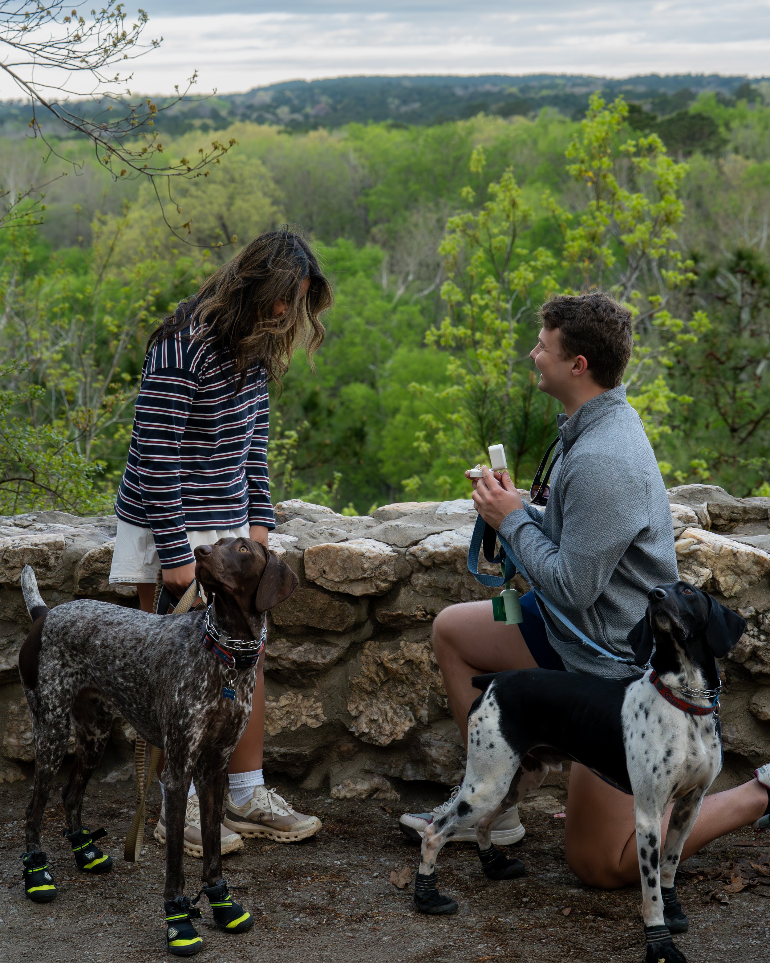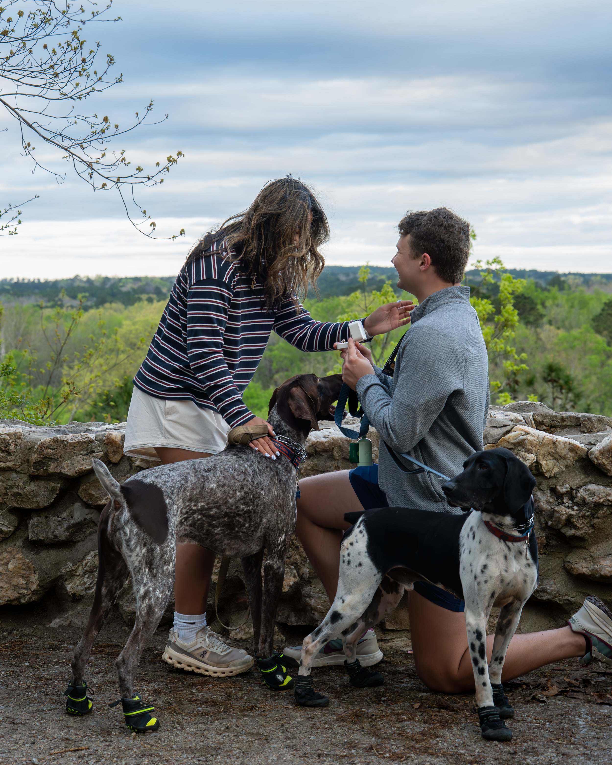 When my client reached out to me about photographing his surprise proposal at Raven Rock State Park, I jumped at the chance. His plan was perfect - just an every day hike with their dogs and a casual offer to have their photo taken - I was thrilled to be part of their special day.